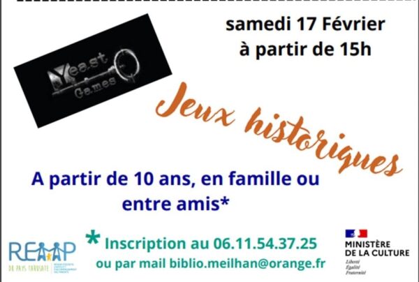samedi 17 Fév. 2024 15:00 – 00:00 MEILHAN Venez jouer ! Jeux historiques au programme avec Alexandre de Yeast Game. A partir de 10 ans, en famille, entre amis et sur inscription.